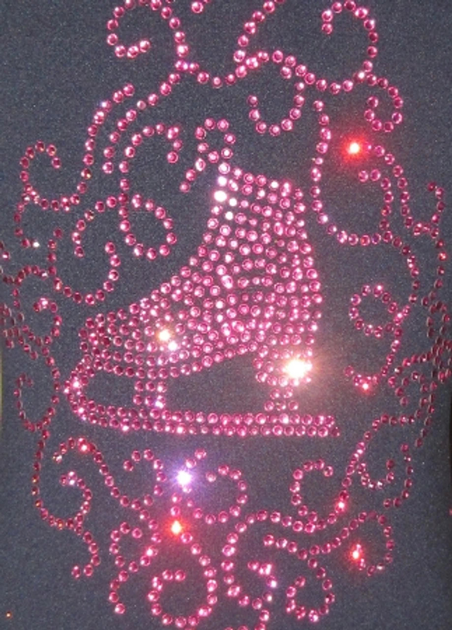 Polartec power stretch ice skating fitted jacket. Rhinestone applique “Skate & Oranment” sparkle with 400 Rose crystals, size ss16(3mm) Rose. Featuring fitted style without the hood, warmth and moisture management for best comfort on the ice.