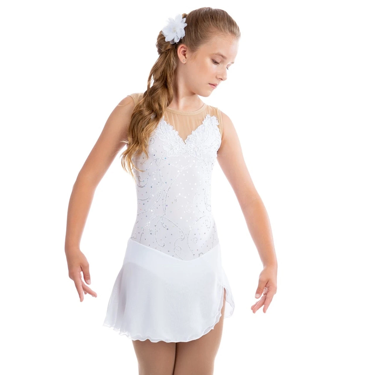 Classic white sleeveless dress with lace applique and an opened back and a wrap chiffon skirt Elite Xpression