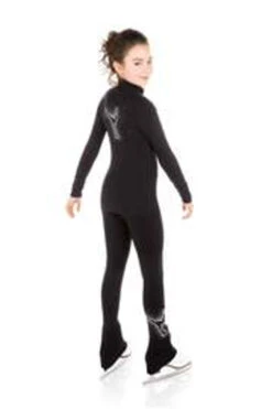 Classical navy lace opened back figure skating dress with wrap chiffon skirt Elite Xpression. STONES NOT INCLUDED