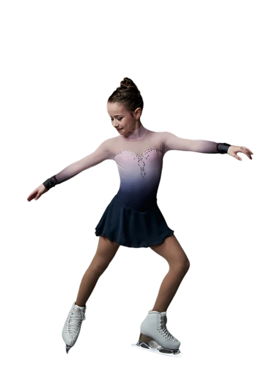 Classical faded light pink dress with crystals and mesh long sleeves with a chiffon skirt for figure skating by Elite Xpression.
