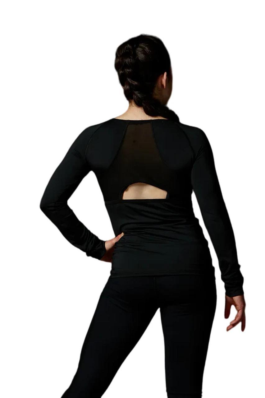 Performance long sleeve black supplex shirt with opening in the back and mesh inserts from the Collection Elite Xpression.