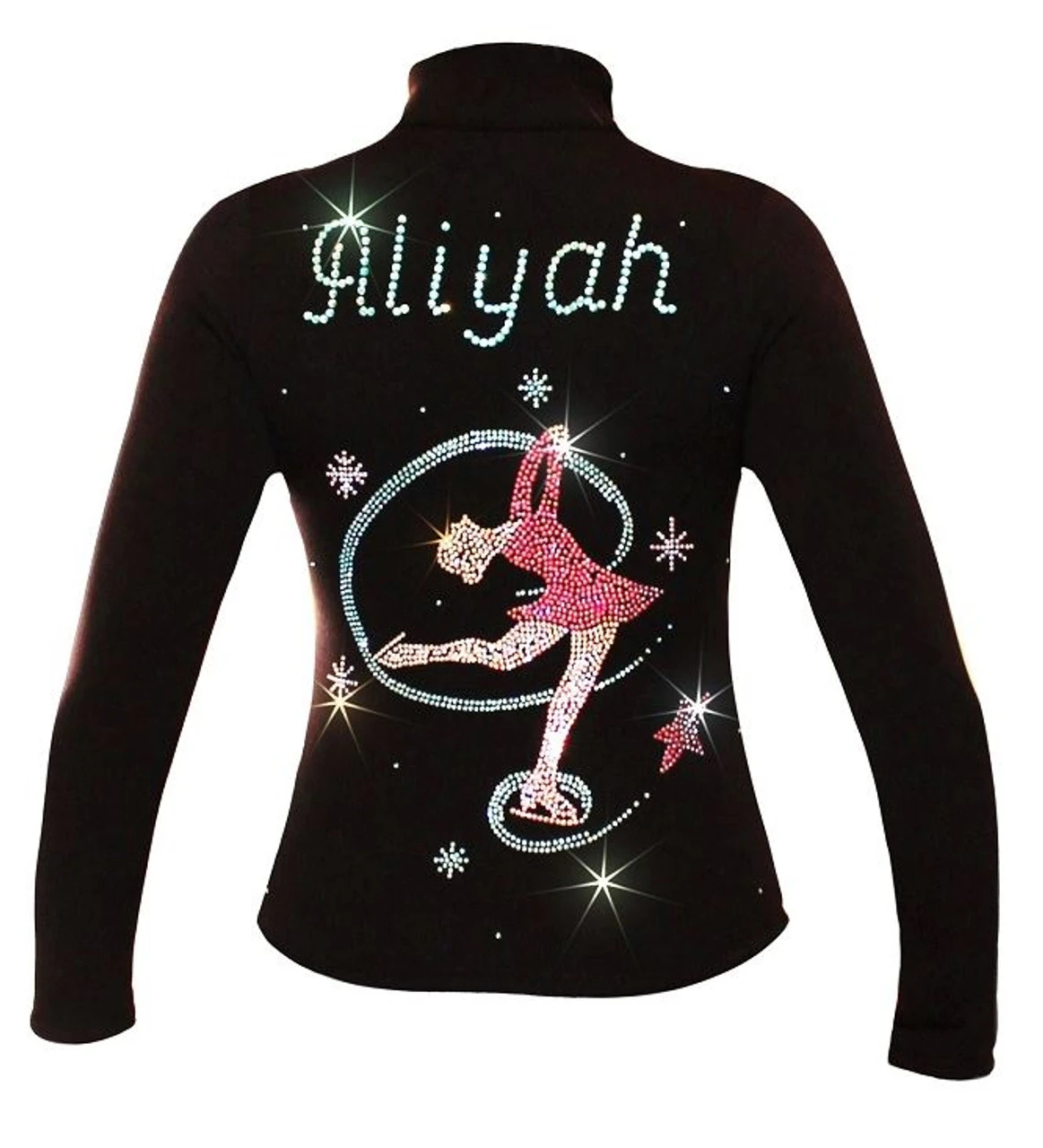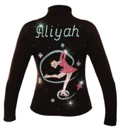 FINAL SALE DUE TO CUSOMIZATON !!! Polartec power stretch personalized ice skating jacket. Choose your favorite applique and personalize with Name. Great for an ice skater gift. Wear it on everyday practice, tests or competition event. All applique and Names made with high quality Czechoslovakian rhinestones. Pink crystals applique comes with pink crystals “Name” on the jacket. “Colorful layback” applique will be made with Name in AB Aqua crystals.