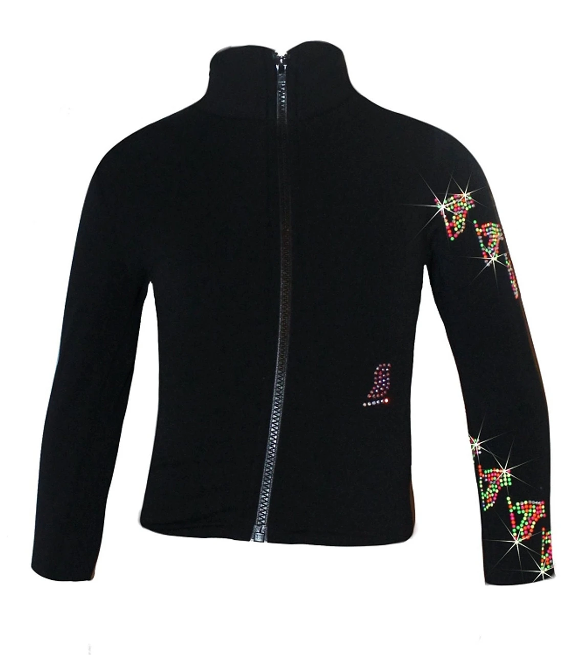 Sparkly rhinestones swirls around the left sleeve of the jackets in “Spiral Skates” pattern. Featuring over 600 AB clear rhinestones. Fitted style without the hood, make this jacket ideal for ice skating practice. Enjoy skating and look great on the ice with premium ice skating jacket by Ice Fire – your way to shine!