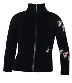 Sparkly rhinestones swirls around the left sleeve of the jackets in “Spiral Skates” pattern. Featuring over 600 AB clear rhinestones . Fitted style without the hood, make this jacket ideal for ice skating practice. Enjoy skating and look great on the ice with premium ice skating jacket by Ice Fire – your way to shine!
