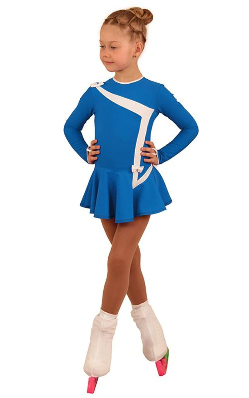 IceDress Figure Skating Dress – Thermal – Bows 2 (Blue With White)