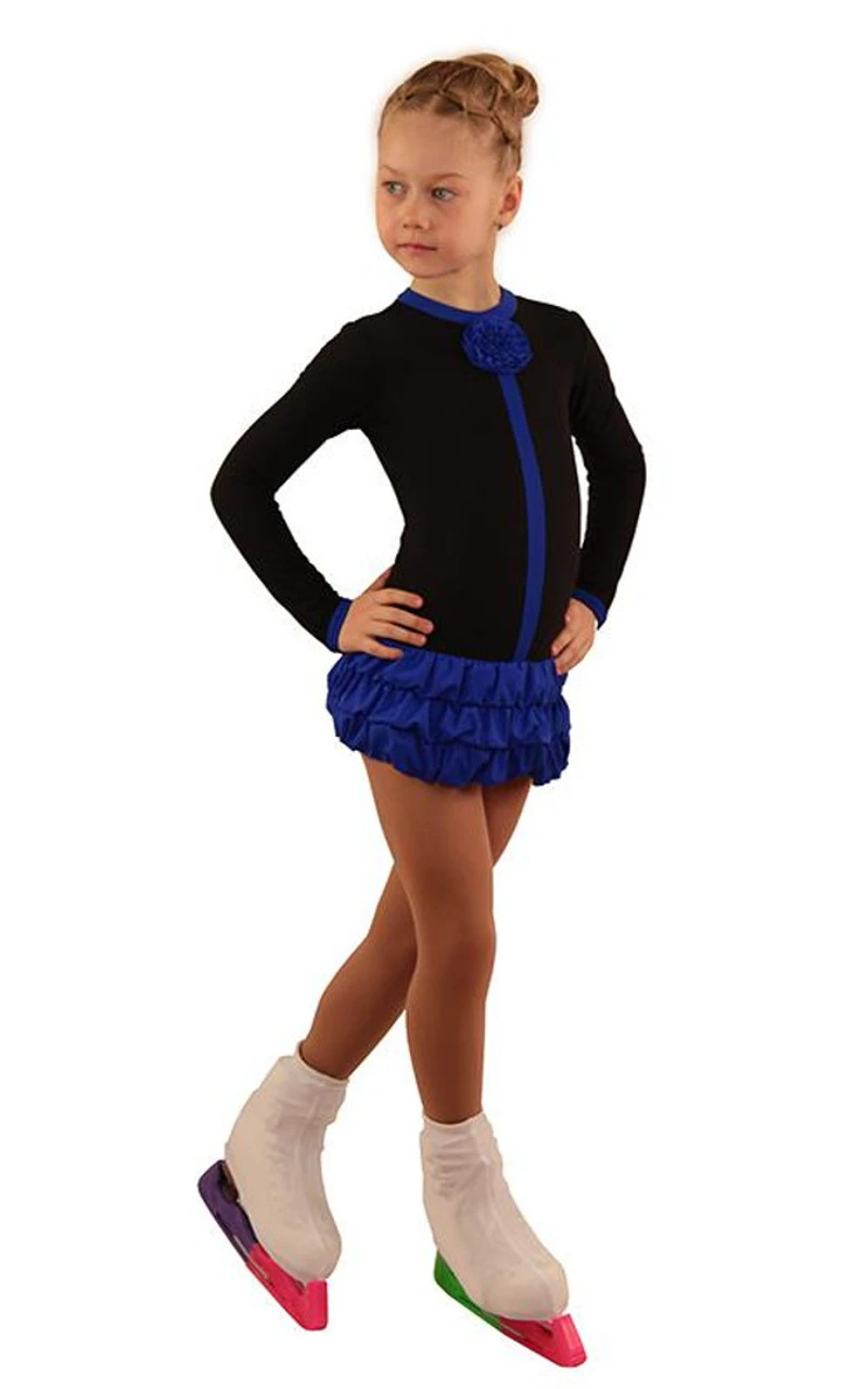 IceDress Figure Skating Dress – Thermal – Buff (Black With Cornflower)