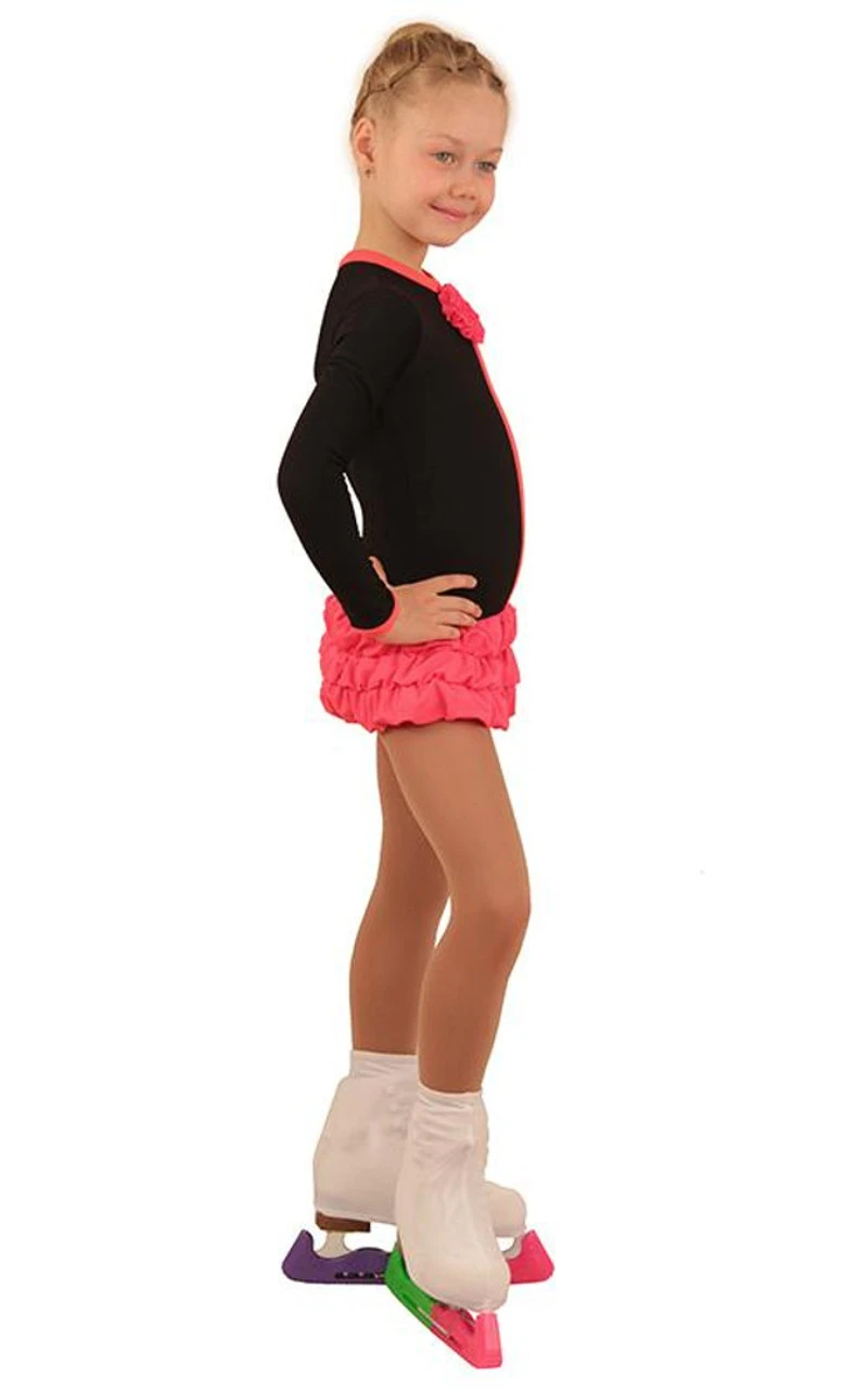 IceDress Figure Skating Dress – Thermal – Buff (Black With Hot Coral)