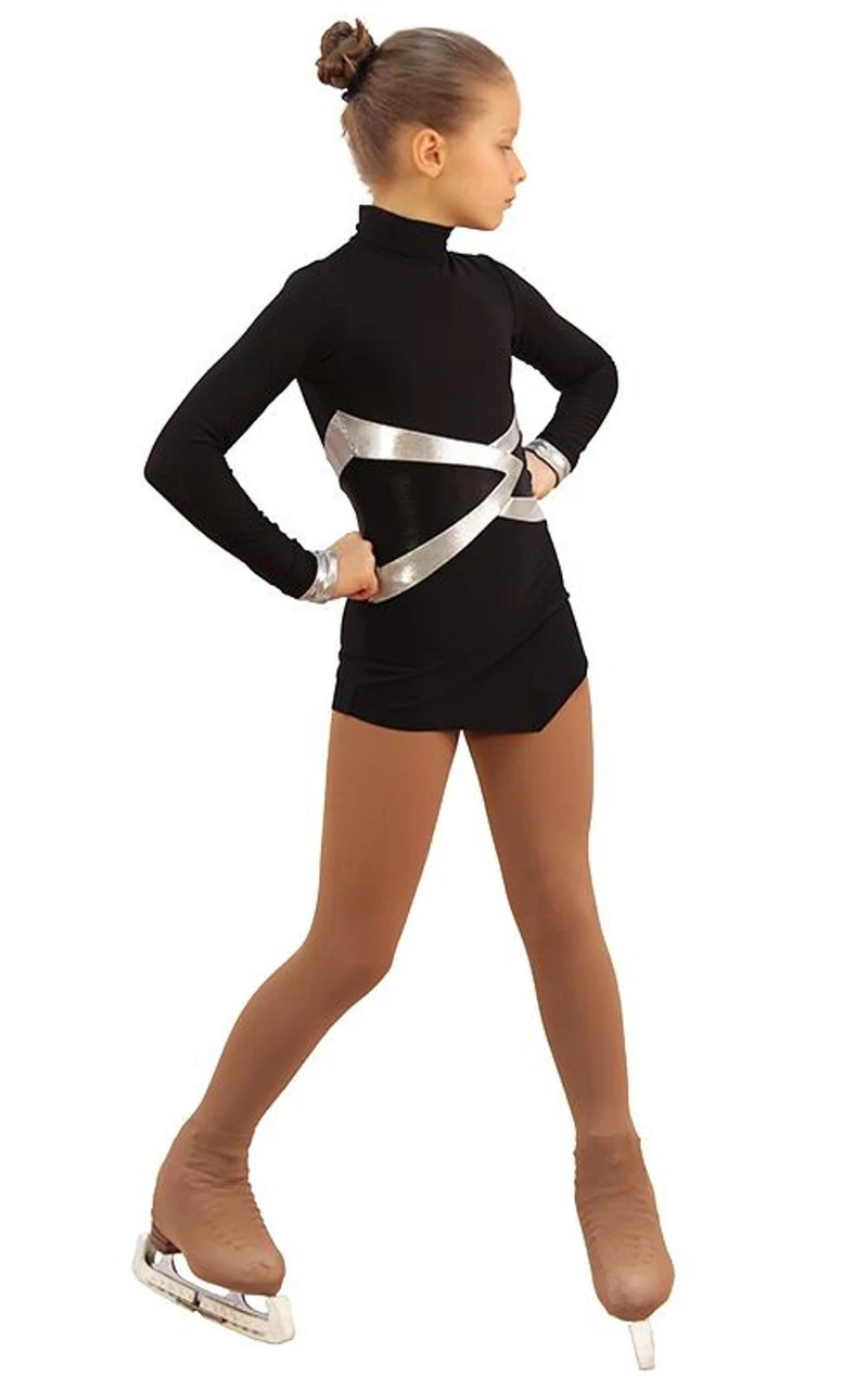We are glad to present a novelty version of a favorite outfit for small athletes. Our new dress will give confidence, charm and coquetry to a young figure skater , complimenting and enhancing the dignity of all shapes. The unusual design of the waist line, combined with different fabric textures and colors, make the slender silhouette and highlight your child on the ice.