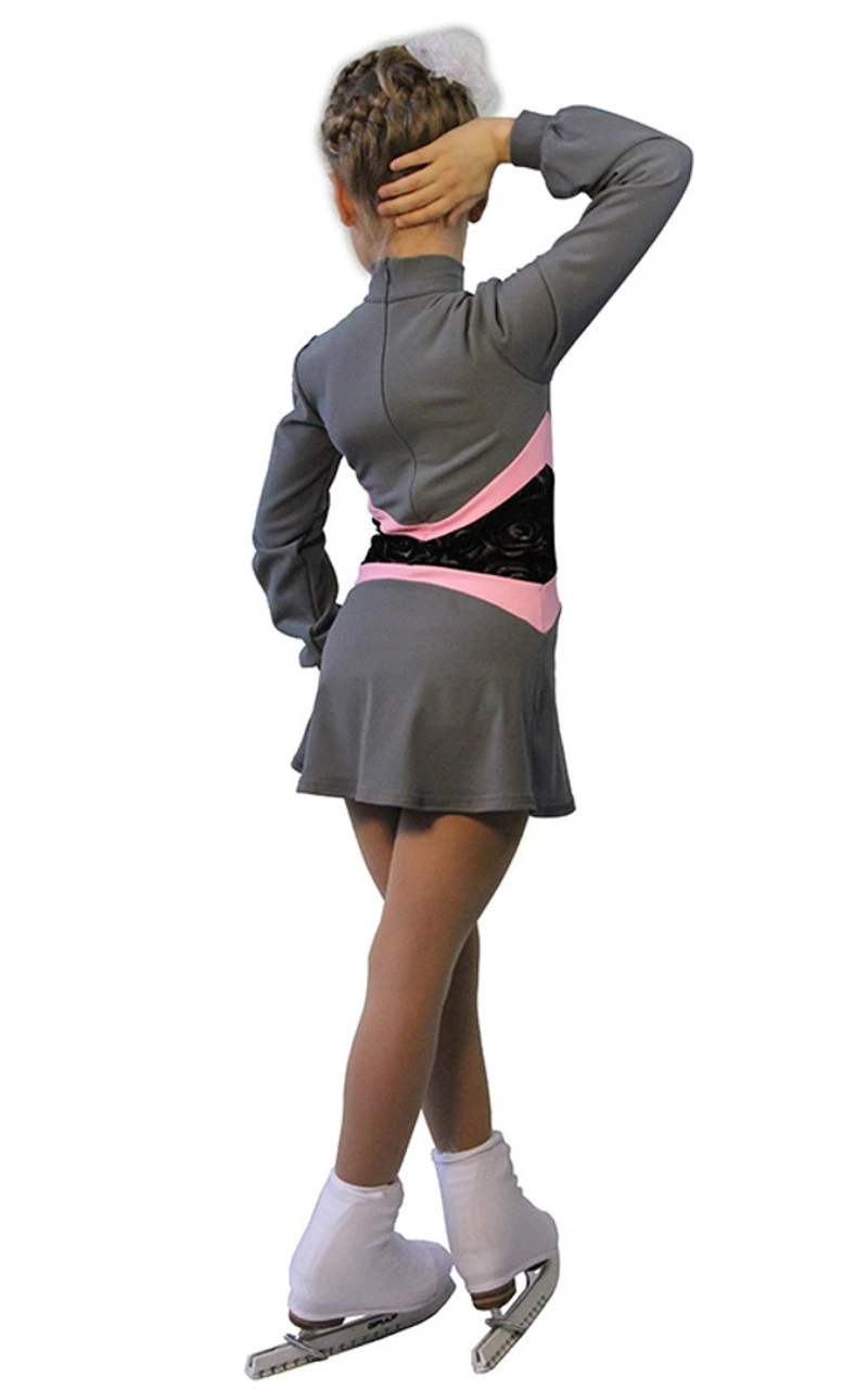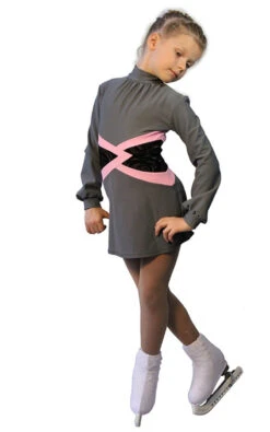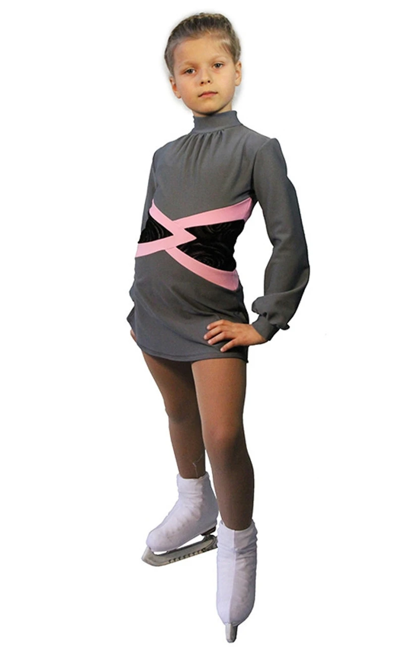 Training dress “Jackson” from Italian Vuelta techno- fabric We are glad to present a novelty version of a favorite outfit for small athletes. Our new dress will give confidence, charm and coquetry to a young figure skater , complimenting and enhancing the dignity of all shapes. The unusual design of the waist line, combined with different fabric textures and colors, make the slender silhouette and highlight your child on the ice. Soft velvet, from beneath which emerges the figure “rose”, makes the model very feminine. We can recommend this dress not only for training but for the first scoring performances of the beginner skaters. As the youngest of them need protection from the cold even in the most crucial moments, the dress is completely made of techno-fabric.