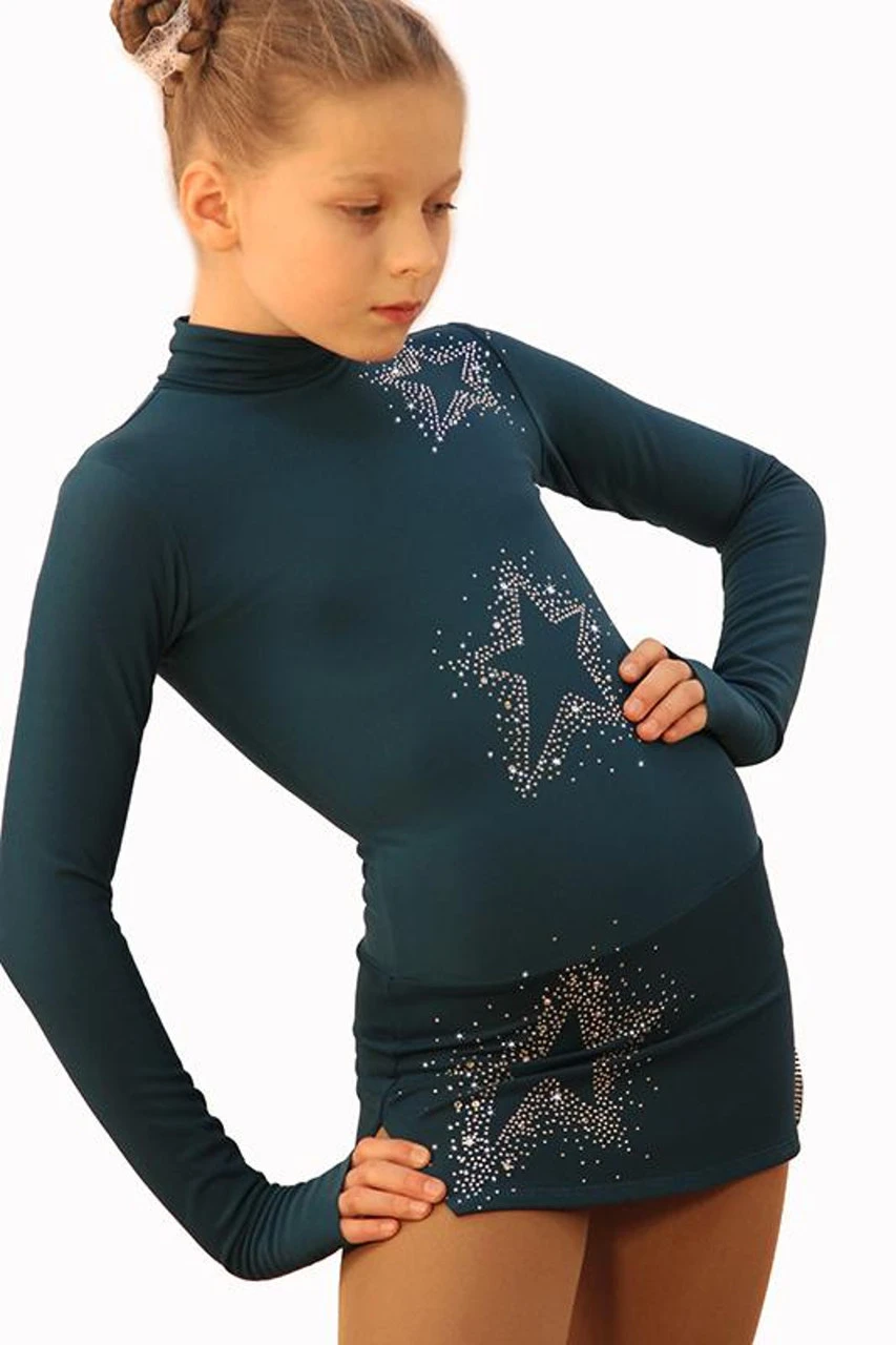 IceDress Figure Skating Dress – Thermal – Super Star (Dark Blue With Rhinestones)