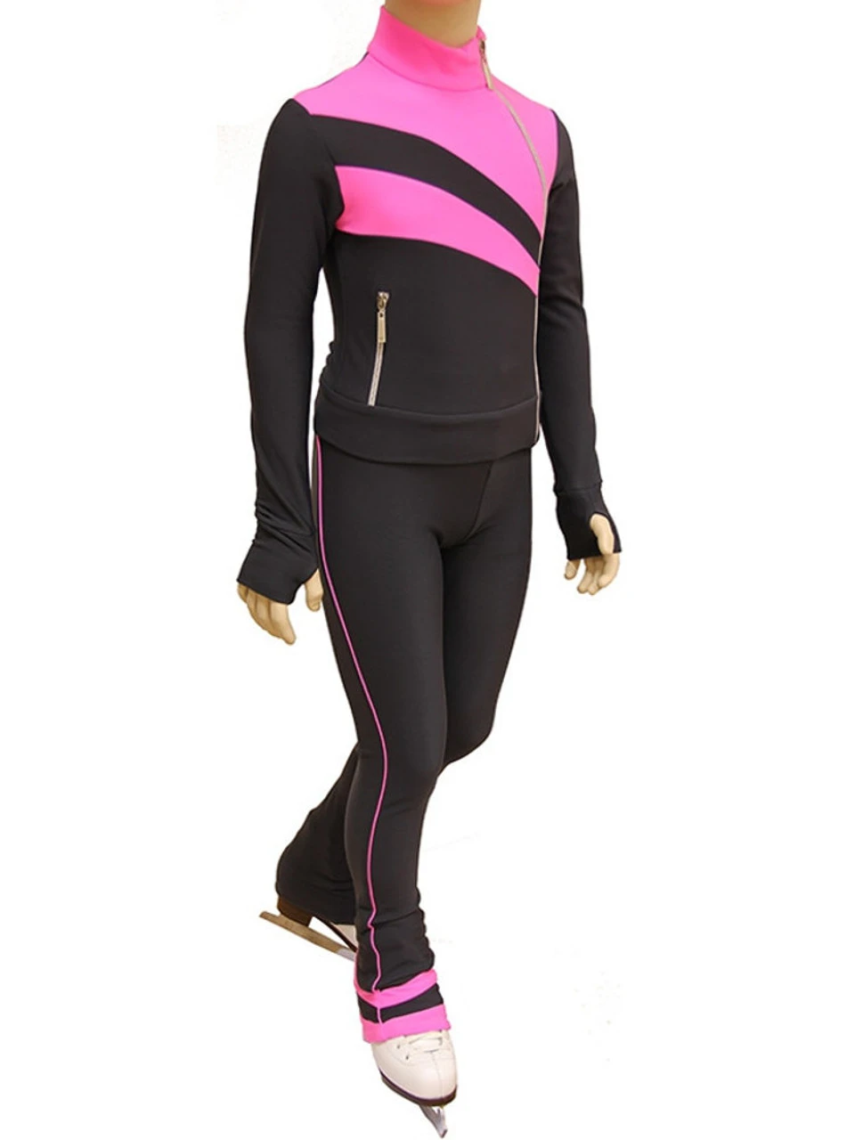 Training Jacket “Rays” for figure skating is made of Vuelta The kit includes jacket and Jacket. Jacket features asymmetrical panels and a zip closure, which is an interesting element of decor and unusual design solution. Cuff – gloves, stand – up collar. Jacket are also asymmetrical and decorated with stripes – piping and curved panels of fabric of a different color. Vuelta – the warm, soft, fastness fabric with inner fleece and a beautiful tension in all directions. Excellent thermal insulation properties, optimum breathability and antibacterial treatment that prevents the spread of germs, make this costume out of fabric Vuelta for guests.