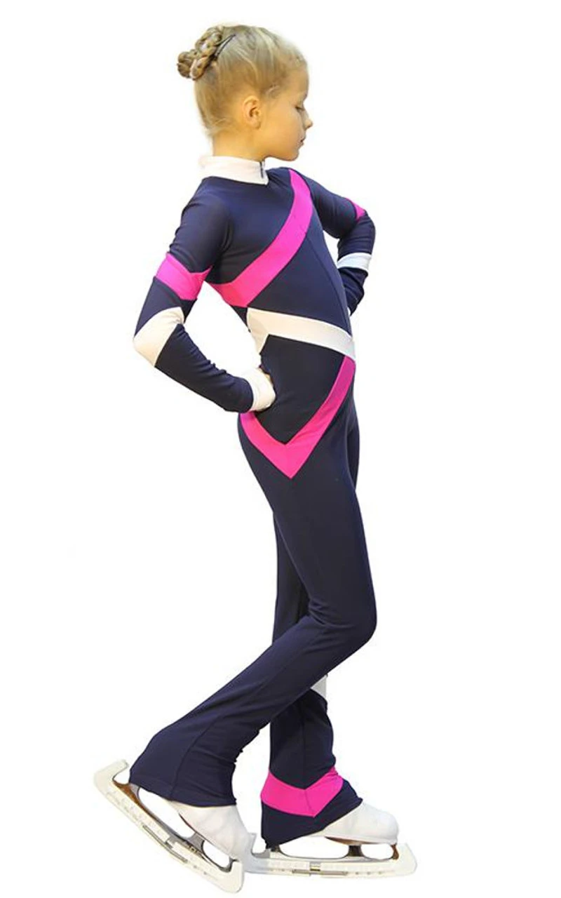IceDress – Figure Skating Training Overalls – Quad (Dark Blue. Fuchsia And White)