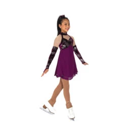 A flattering style dress with a flowy empire skirt and long glove look sleeves with finger points in a rich port glitter velvet. A back clip and traditional keyhole enhance the long, slim silhouette of this design.