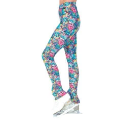 Print lycra legging with elastic waist can be pulled down under the heel or left at ankle height.