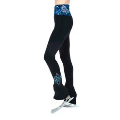 Sleek black fleece leggings designed with an ultra comfortable high waist in a striking print and set off by an eye-catching art-nouveau crystal snowflake on one lower leg.