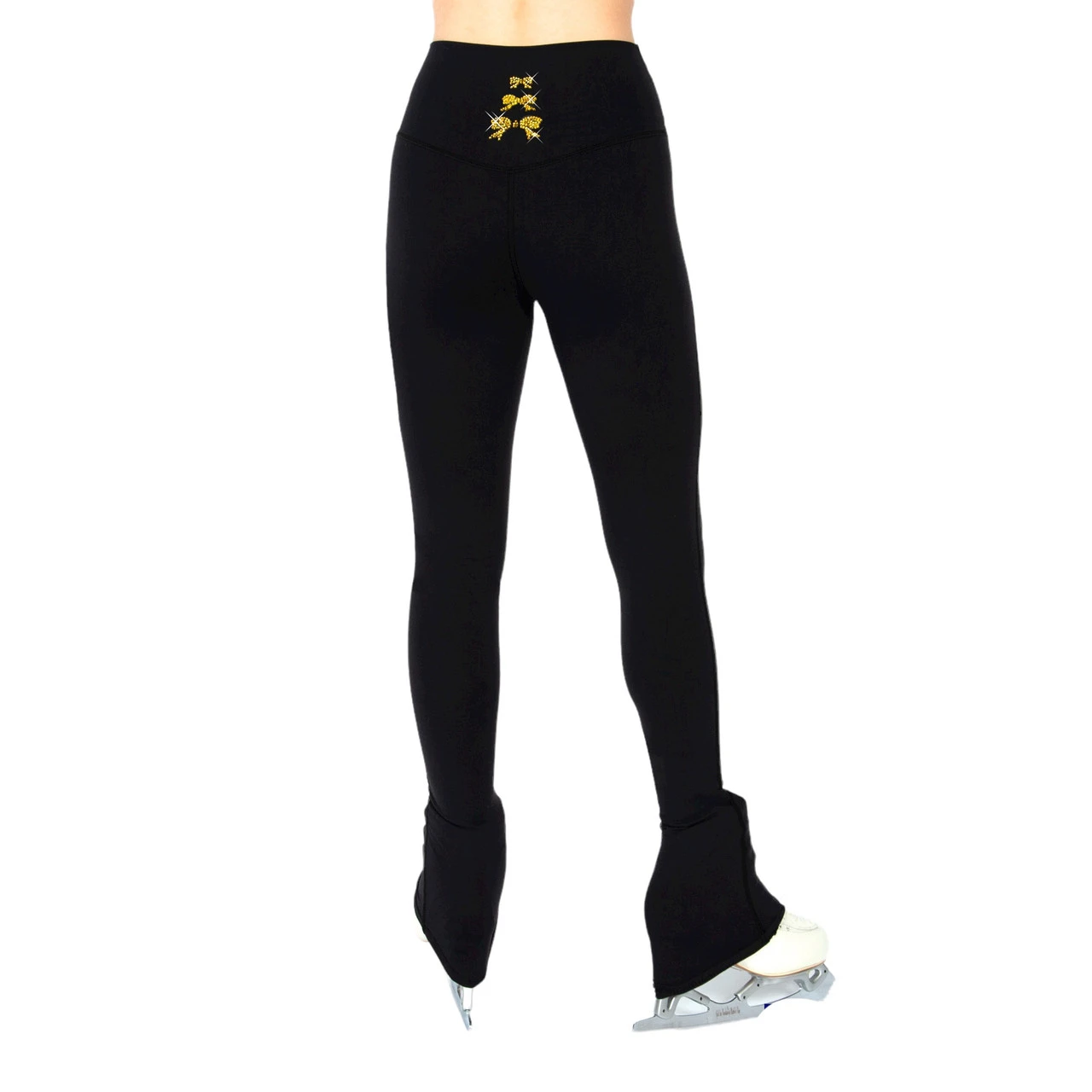 Black supplex leggings with an under-the-heel fit and a wide, contoured waistband featuring a trio of bows at the back.