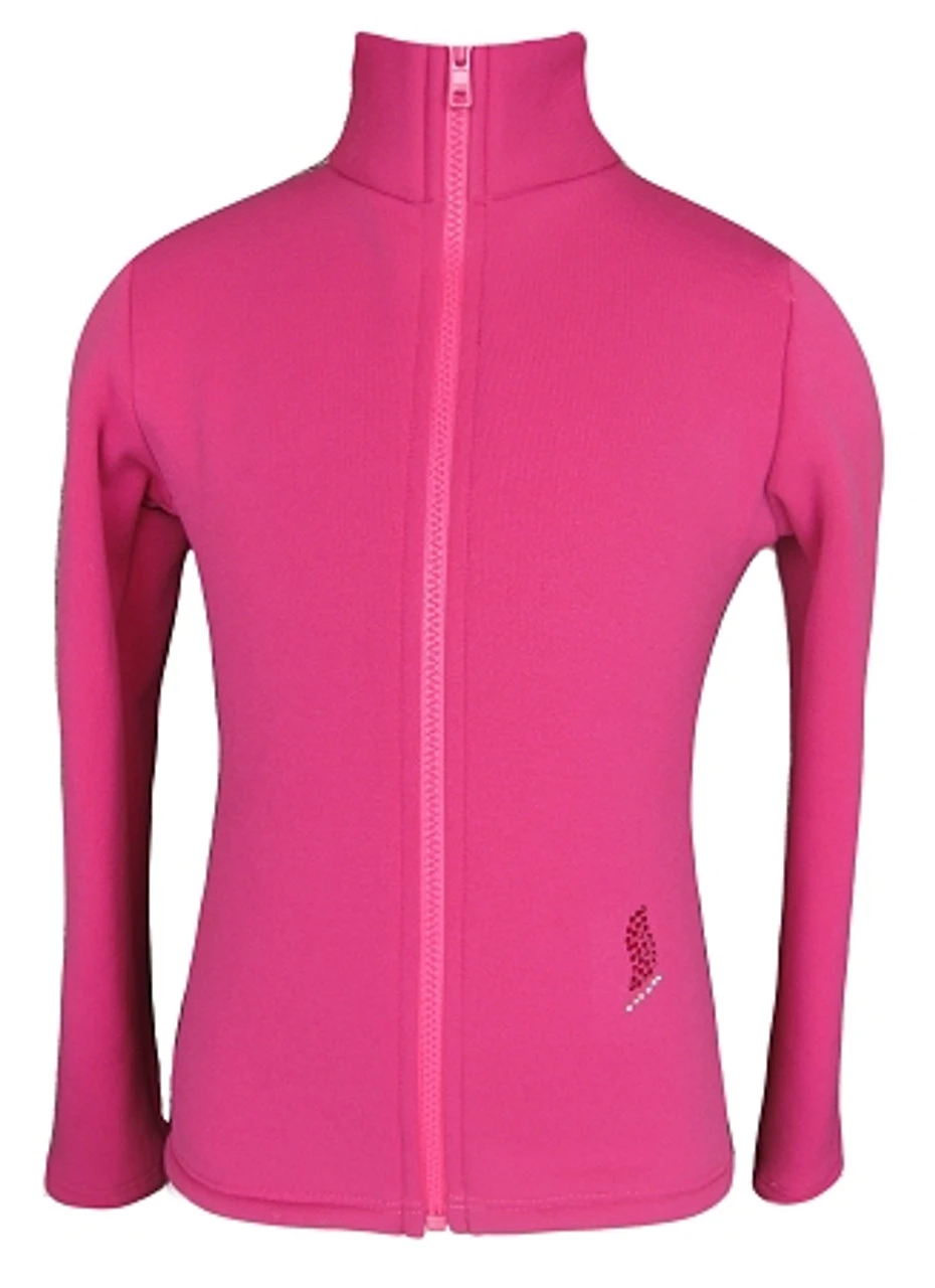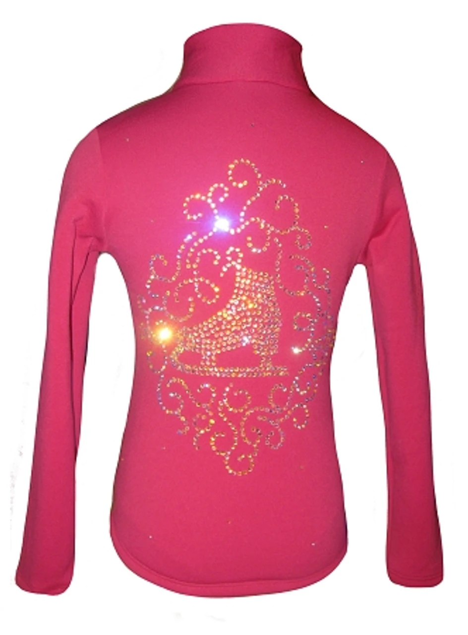 Polartec power stretch ice skating jacket with crystal applique: apx.400pcs. superior machine cut czechoslovakian rhinestone size ss16 AB crystal. Great for every day practice and competition event. Fitted style without a hood and high performance polartec fabric ideal for ice skating that demand freedom of movement, moisture management, and warmth.