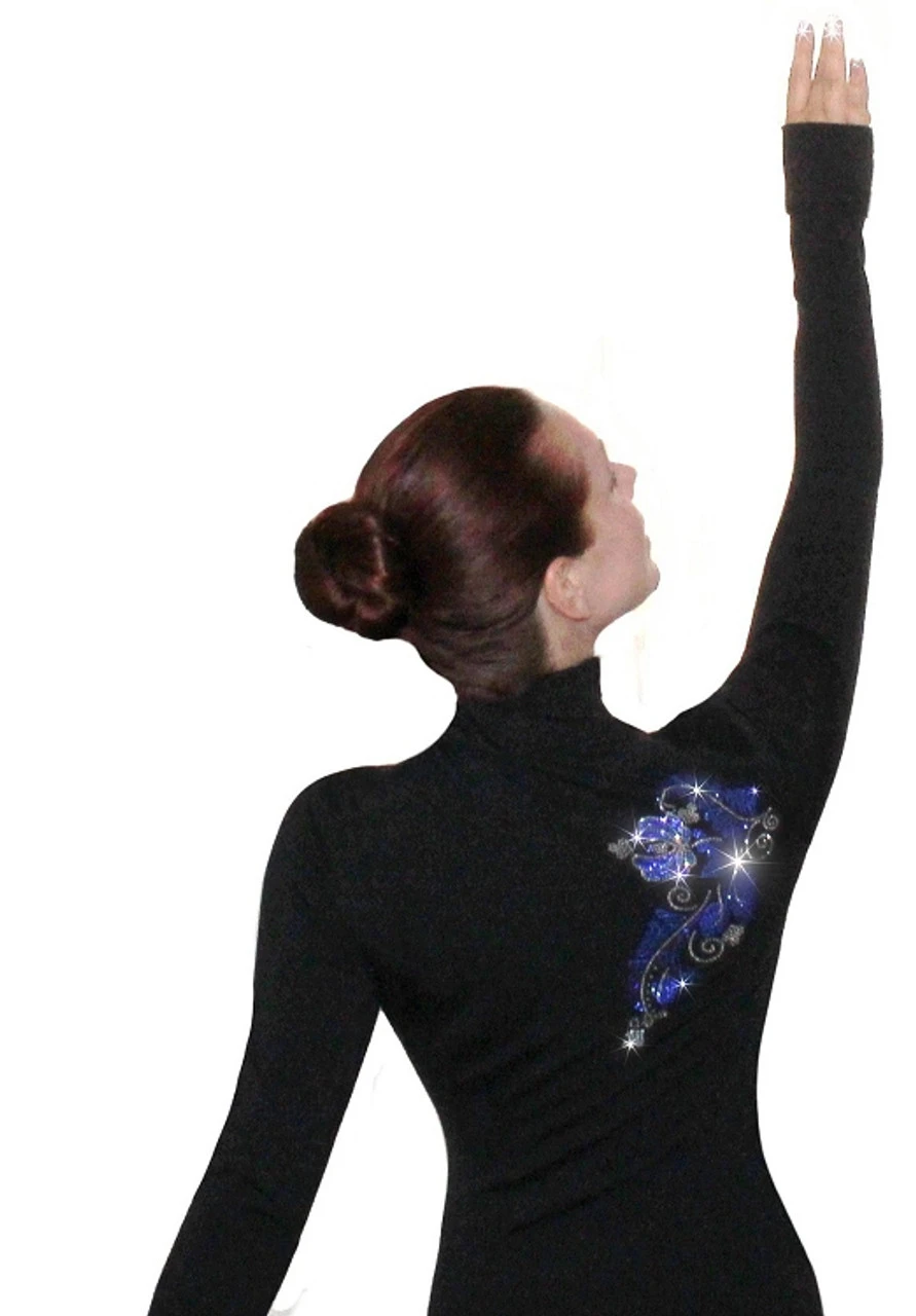 Venetta “Floral” figure skating jackets was inspired by Russian traditional painting technique. Rhinestone applique sparkles with versatile combination of silver hematite and deep blue sapphire color. Feminine silhouette and crystals accent creates neat and graceful look on the ice. High performance, four way stretch Supplex Microfiber fabric offering body slimming effect and give remarkable freedom of movement. Breathable, quick-drying properties of the fabric wicks sweat away from the skin. Enjoy figure skating in unique, classy and comfortable ice skating jacket from Ice Fire Skate Wear.