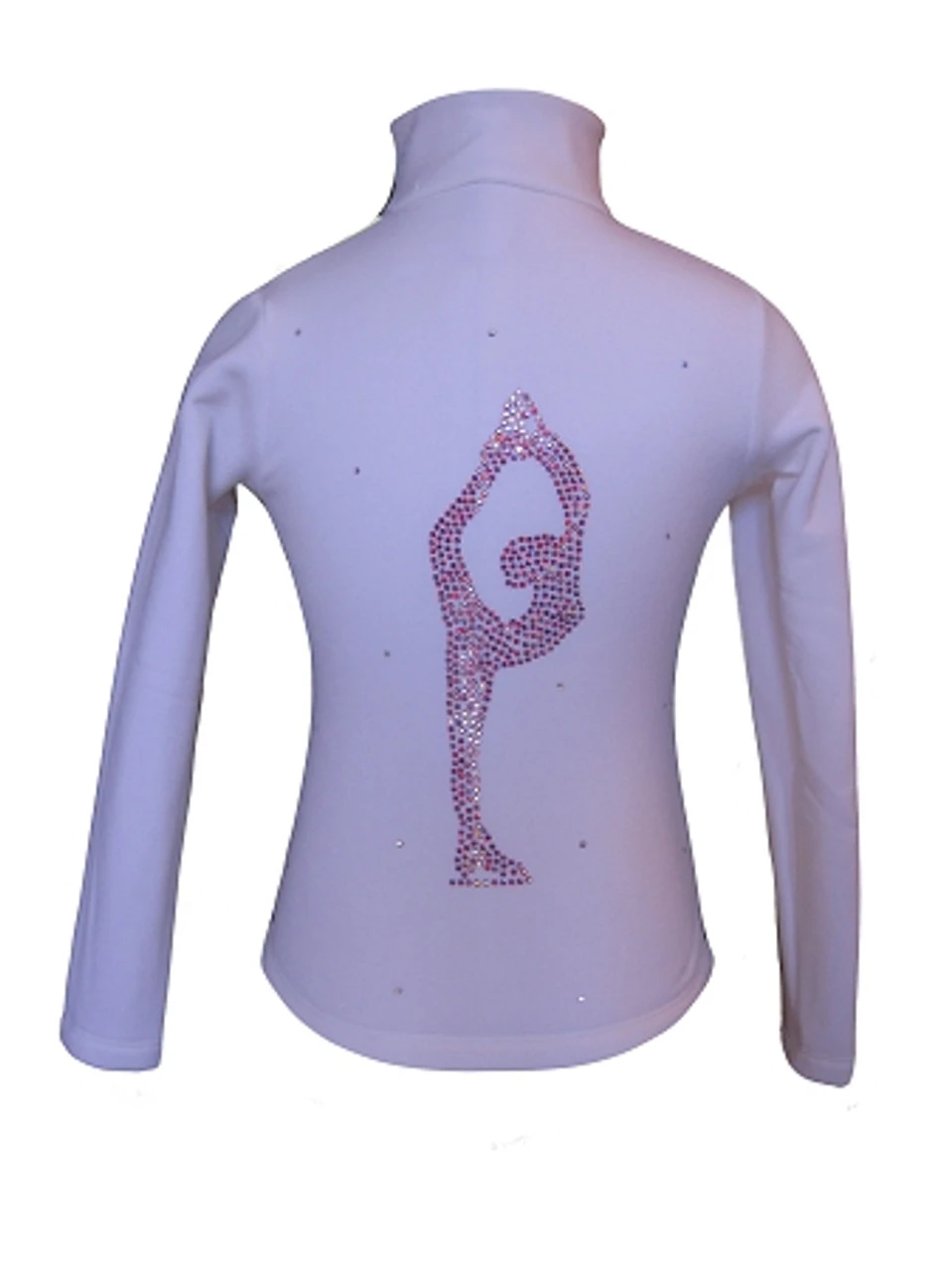 Polartec power stretch ice skating jacket with crystal applique: 400 superior Czechoslovakian rhinestone size ss10 AB Fuchsia/Red (red rhinestones with rainbow coating). Great for every day practice and competition event. Fitted style without a hood and high performance Polartec fabric ideal for ice skating that demand freedom of movement, moisture management, and warmth.