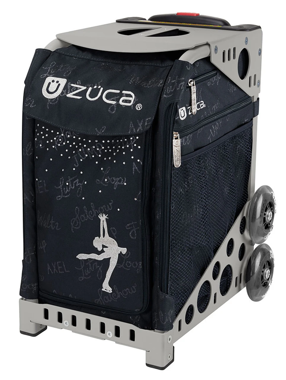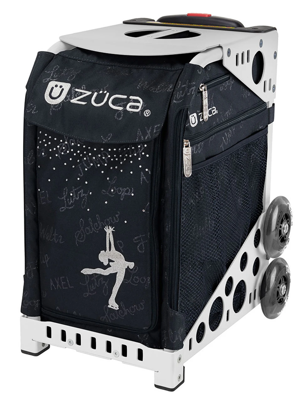 Ice Queen was designed with the elegance of an ice skater in mind. The fluidity of motion, as the skater gracefully flows on the bag, is accented by falling snow of the winter season. Embellished rhinestones bring the snow to life, making the Ice Queen bag a fashion accessory fit for the beauty of an ice skater.
