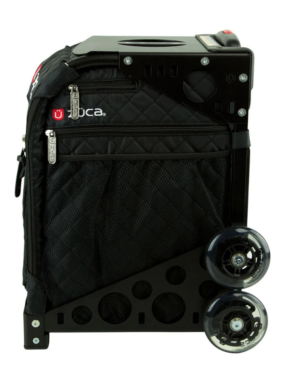 Get a peek into what mysticism is about with our new release. Have a sneak look into the mystic peaks with our design. Zuca Sport Bag – Mystic has crystals on a quilted black background. The design of the Zuca bag creates a pleasant aura for the people around you. There is an artistic touch to the design. Zuca Sport Bag – Mystic can be accessed in front to carry all that you want. When you open the Zuca bag there is a lot of space inside to place your accessories. The side zips open to small compartments used for carrying small things. The color of the zips goes really well with the design of the bag. The side pouch that carries water bottle looks very attractive. The wheels are sturdy and pass through the patchy roads and keep the Zuca bag upright. School kids find it comfortable to sit on top of the Zuca bag and put on their skates.